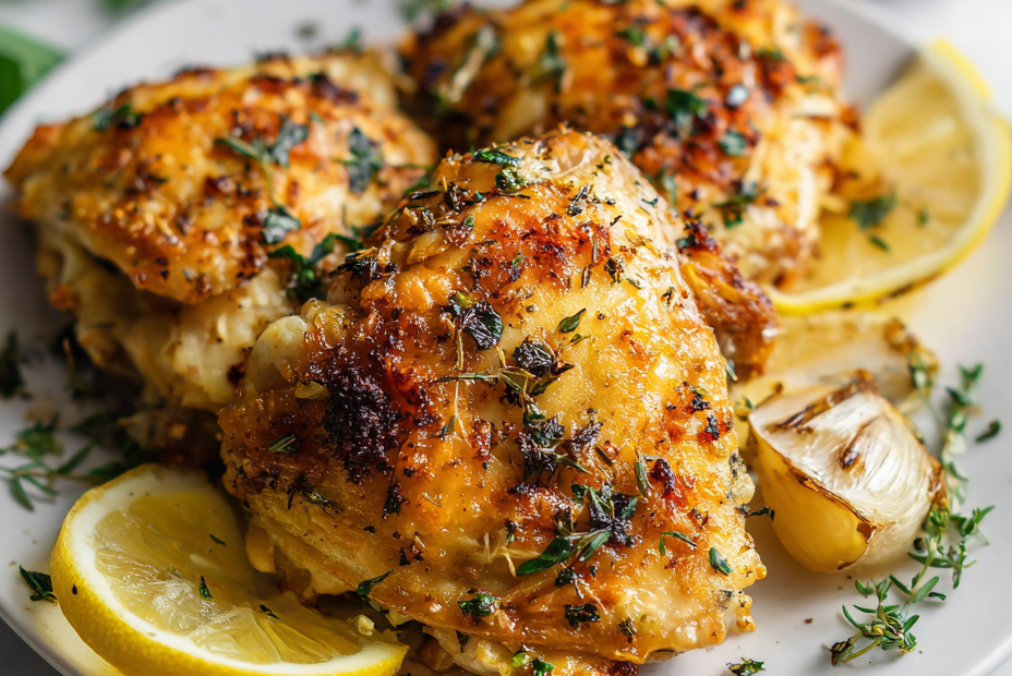 Let the chicken rest for 5 minutes on a wire rack or plate. Finish with a squeeze of lemon and serve hot, crispy on the outside, juicy inside.