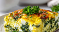 10. Slice into squares, garnish with chopped herbs if desired, and serve warm for a hearty, cheesy breakfast experience.