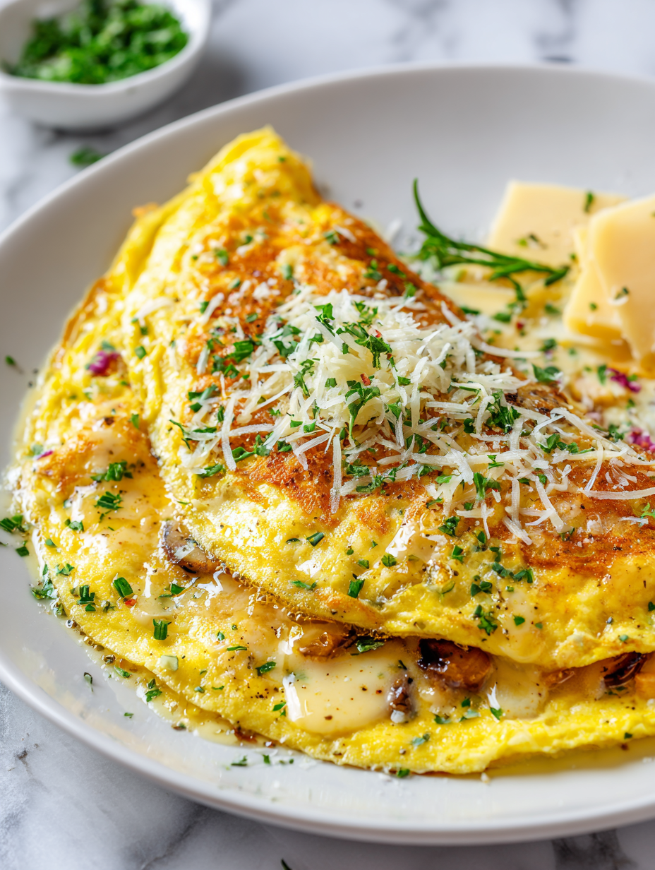 Focusing on the art of balancing flavors and textures in a cheese omelette, where each bite offers a perfect melt, a hint of smoky richness, and a subtle tang that elevates it beyond the usual breakfast fare.