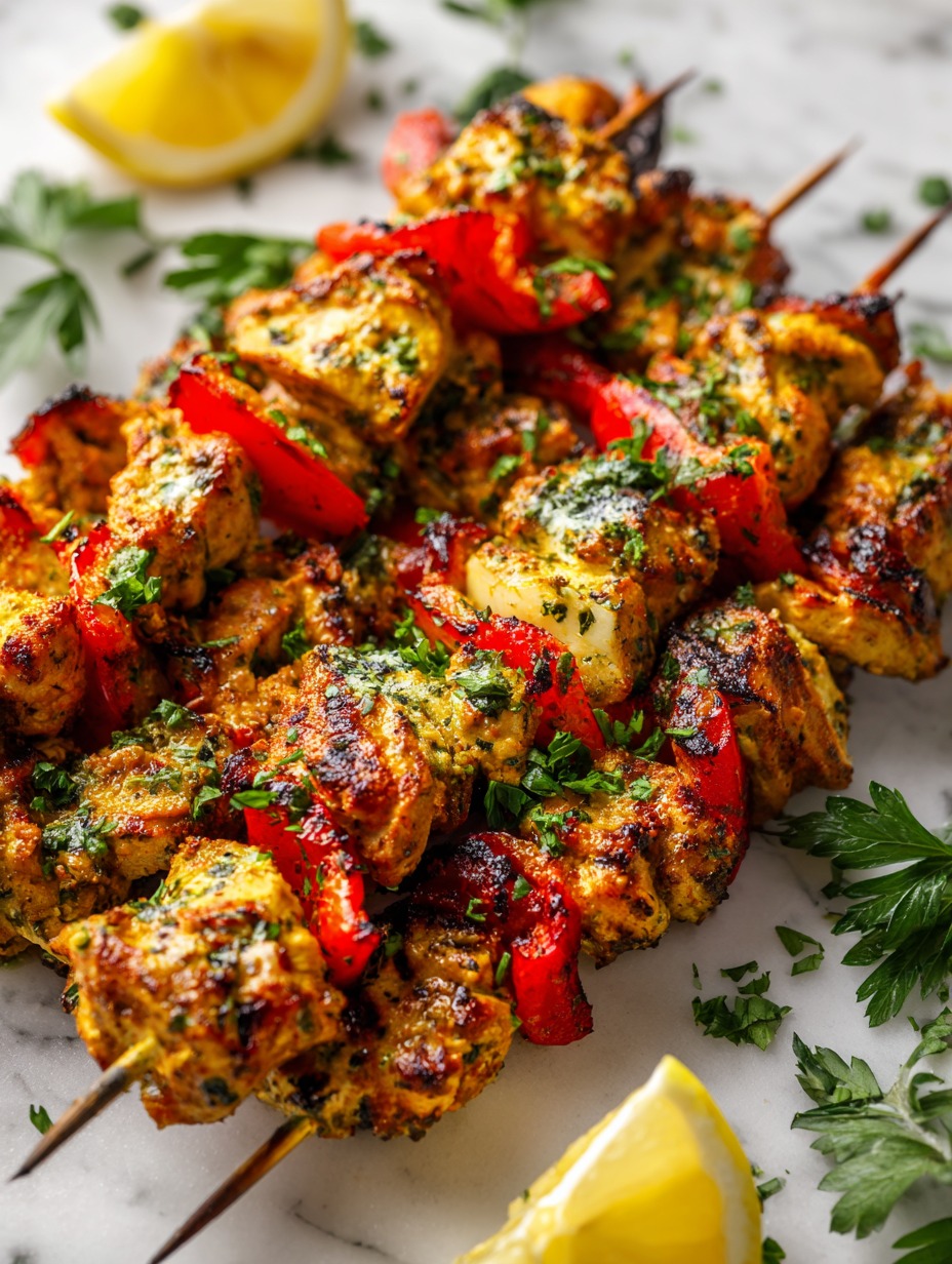 8. Squeeze fresh lemon over the skewers before serving to brighten the flavors. Serve hot, garnished with extra herbs if desired, alongside your favorite sides.