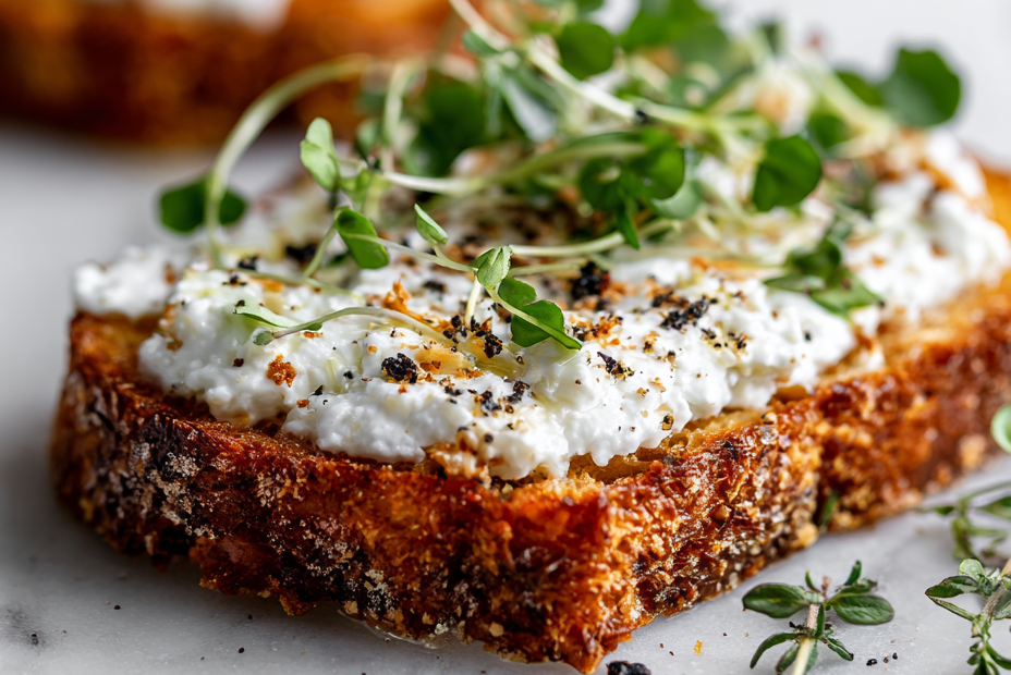 - The crunchy toast paired with creamy cottage cheese is reminiscent of rustic breakfasts served in rural kitchens for generations.
