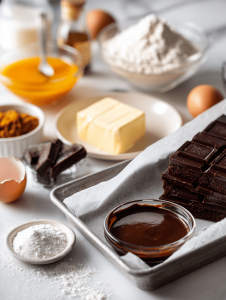 - Place the dark chocolate and butter in a heatproof bowl and melt them together over simmering water, stirring until the mixture is smooth and glossy. Let it cool slightly while you prepare the other ingredients.