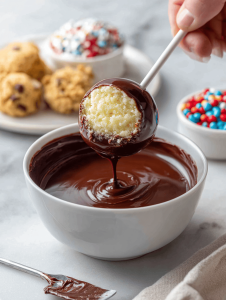 • Ensure the cake balls are well chilled before dipping to prevent cracking.