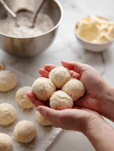 Step 5: Divide dough into small balls, about the size of a walnut. Place on the baking sheet, spacing well apart.