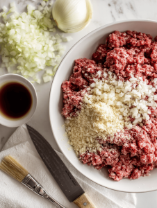 - Ground beef (or mix of beef and pork): Provides the hearty, juicy base with a rich flavor. Swap with ground turkey for a leaner, milder result.