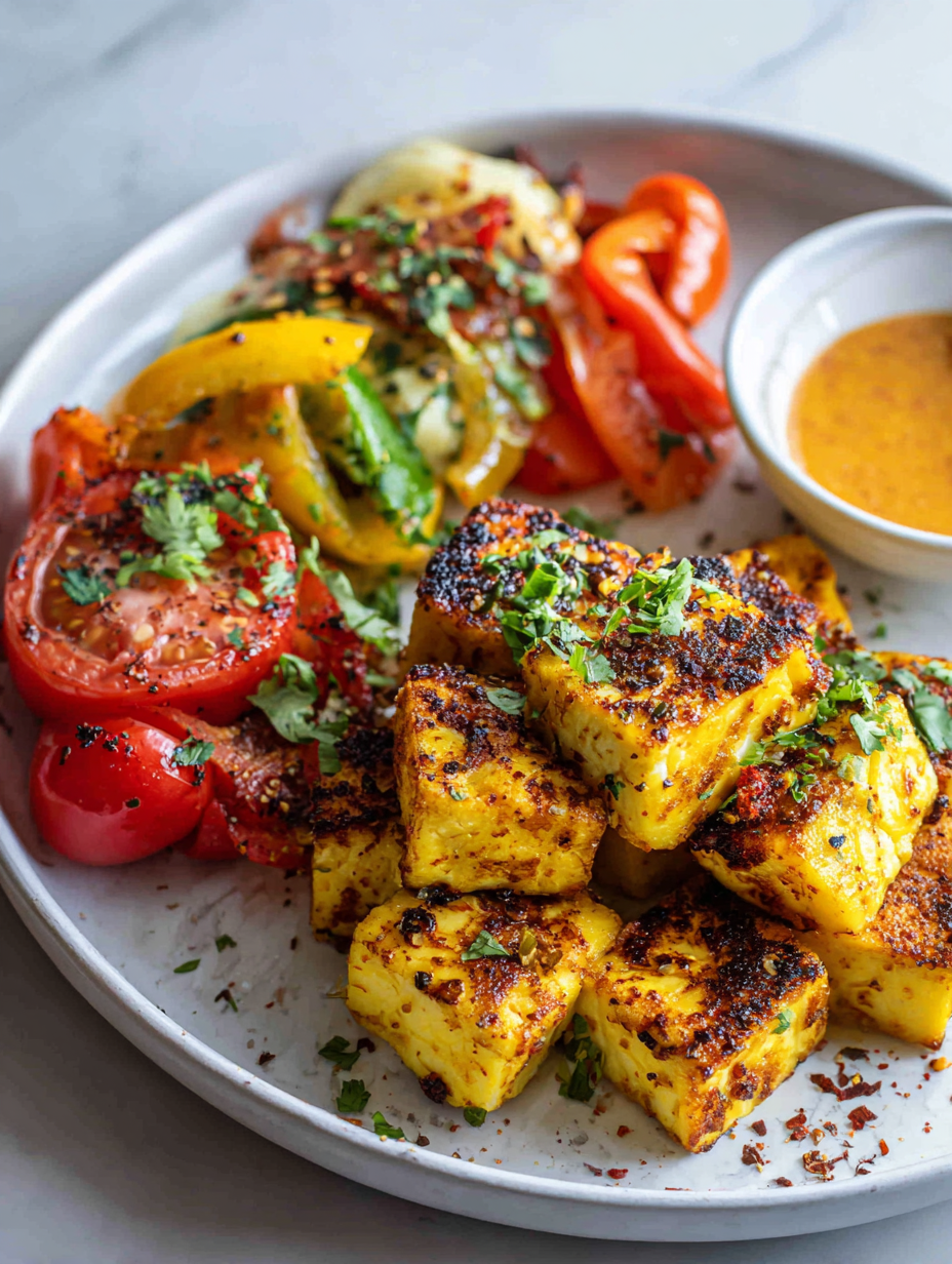 This versatile paneer snack plate features crispy grilled paneer paired with fresh vegetables, herbs, and tangy yogurt, creating a colorful and flavorful platter. The dish combines textures from crunchy to creamy, making it perfect for sharing or a casual snack. It’s a simple, creative way to turn paneer into an appealing, multi-textured plate.