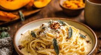 8. Serve immediately, garnished with extra herbs and a crack of black pepper. Enjoy the creamy, smoky richness of this seasonal pumpkin Alfredo.