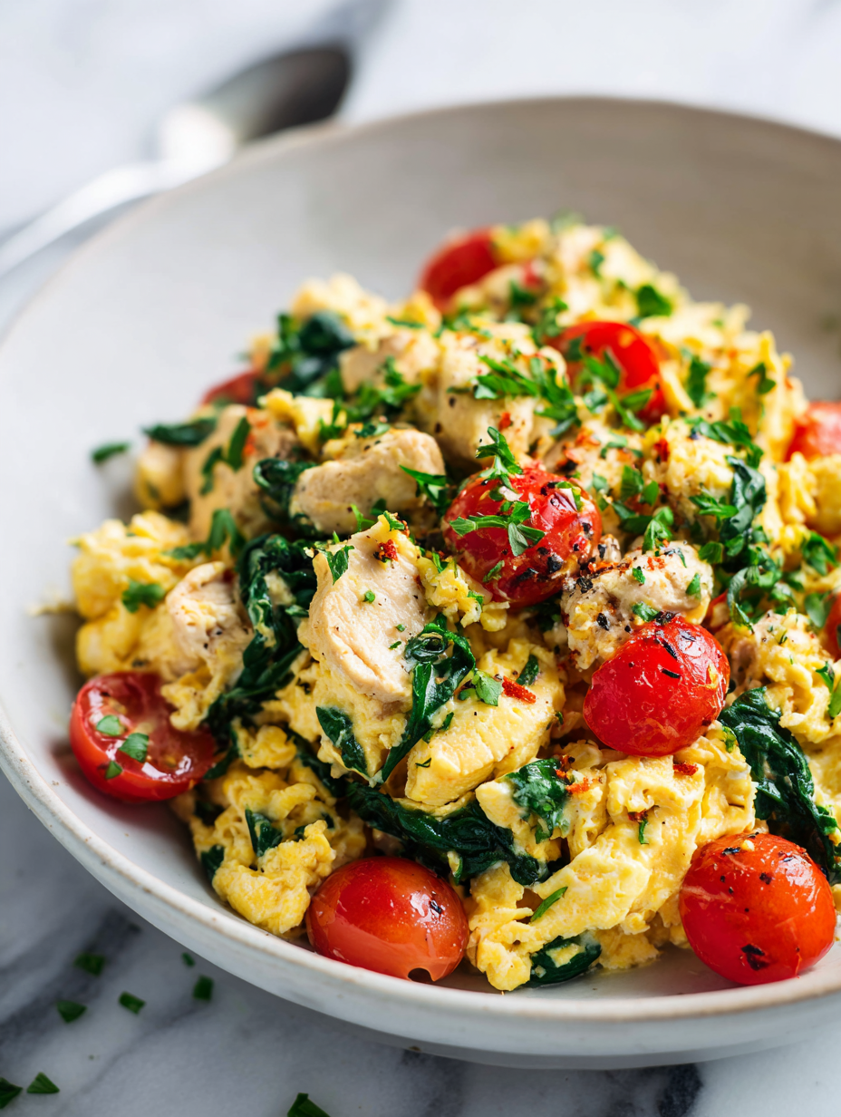 - Finish off heat: Remove from heat slightly before eggs are fully cooked—they’ll carry over and set perfectly off the stove.