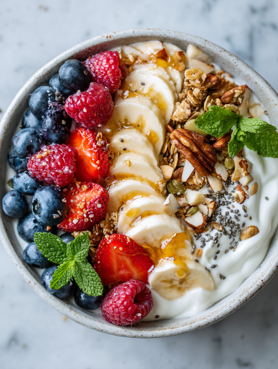 • This recipe sprouted from a morning ritual I started during a hectic stretch — a way to ground myself before the day took over. One quiet weekend, I experimented with layering textures and flavors, trying to find a bowl that felt nourishing yet quick. That first spoonful of tangy yogurt, crunchy nuts, and sweet honey was a small victory, a moment of calm amid chaos.