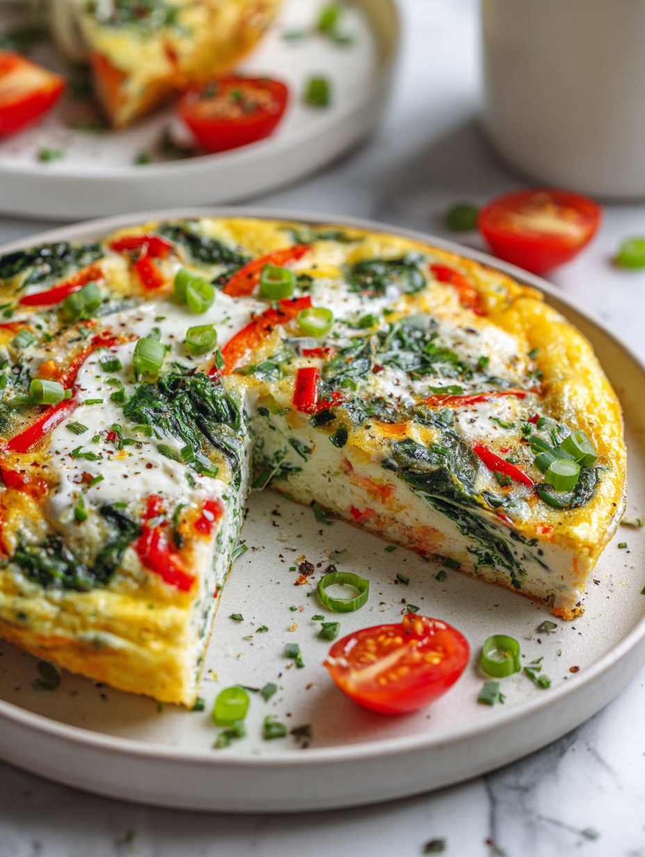 This light, protein-packed frittata is made with fluffy egg whites and customizable with seasonal vegetables and herbs. It features a delicate, airy texture with a golden, slightly crisp top, perfect for a nourishing breakfast or brunch. The dish comes together quickly, showcasing simple ingredients in a vibrant, satisfying form.