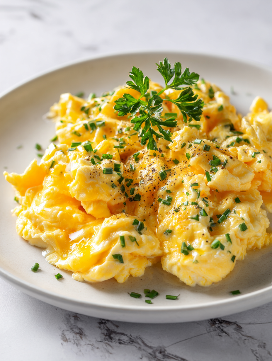 • I prefer large, fresh eggs—they’re naturally richer and more tender, giving your scramble a silky texture. If yours are a few days old, just whisk a little milk or cream to boost creaminess.