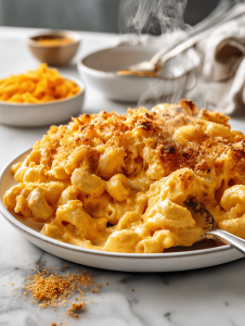 This comforting dish combines creamy pumpkin puree with sharp cheddar cheese and tender elbow macaroni, creating a velvety sauce that’s baked to bubbly perfection. The dish features a golden, crispy top and a smooth, flavorful interior, perfect for a cozy fall meal. It’s a delightful twist on classic mac and cheese with a seasonal, sweet-savory balance.