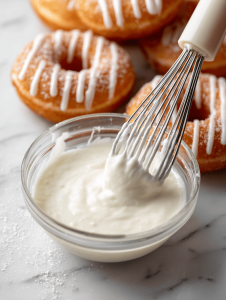 - Mix powdered sugar with milk to create a smooth glaze. Drizzle or spread it over the donuts while they are still warm.
