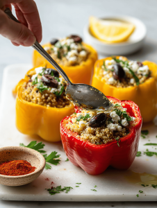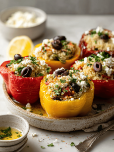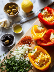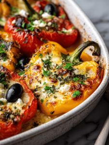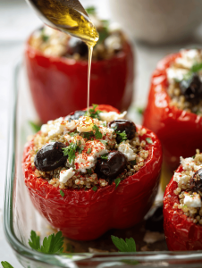 Step 5: Place stuffed peppers in a baking dish, drizzle with olive oil, and cover with foil.