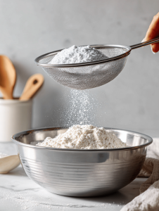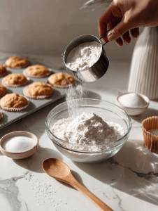 Step 3: Mix your dry ingredients: flour, sugar, baking powder, and a pinch of salt.