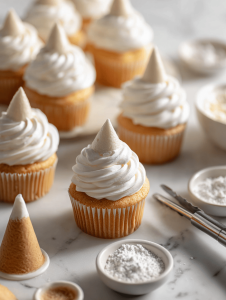 • Mini cones or cookies: To serve as the hats that top each cupcake.